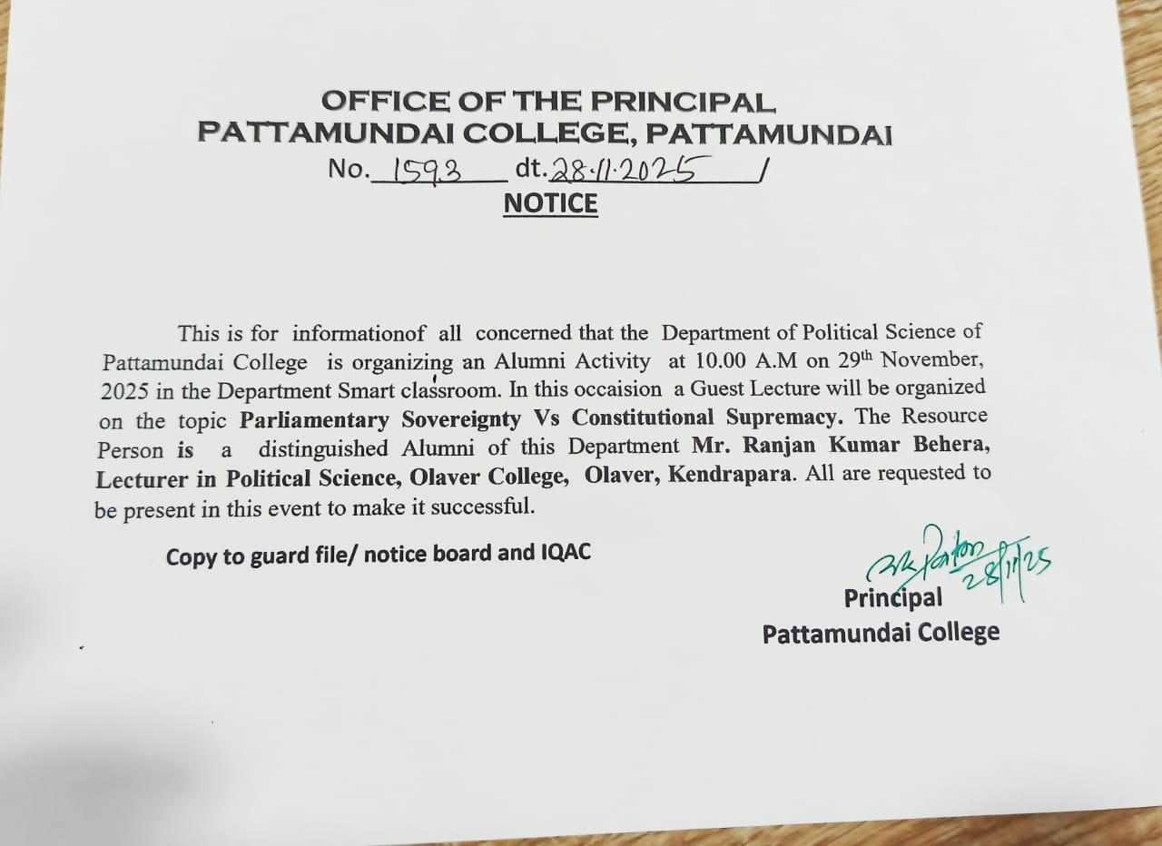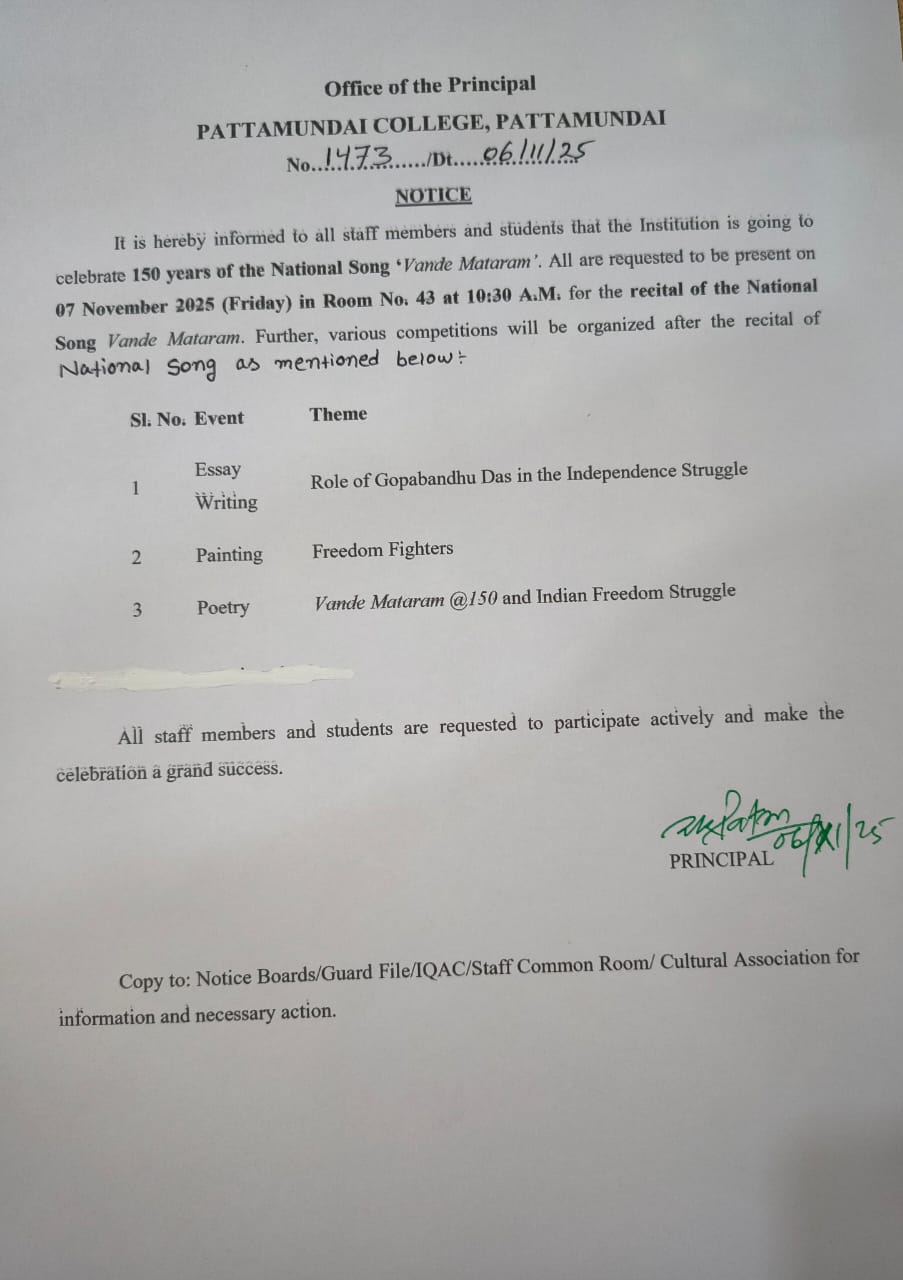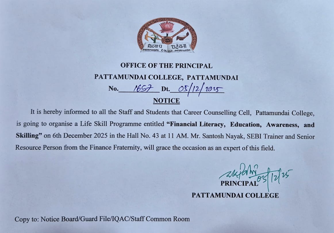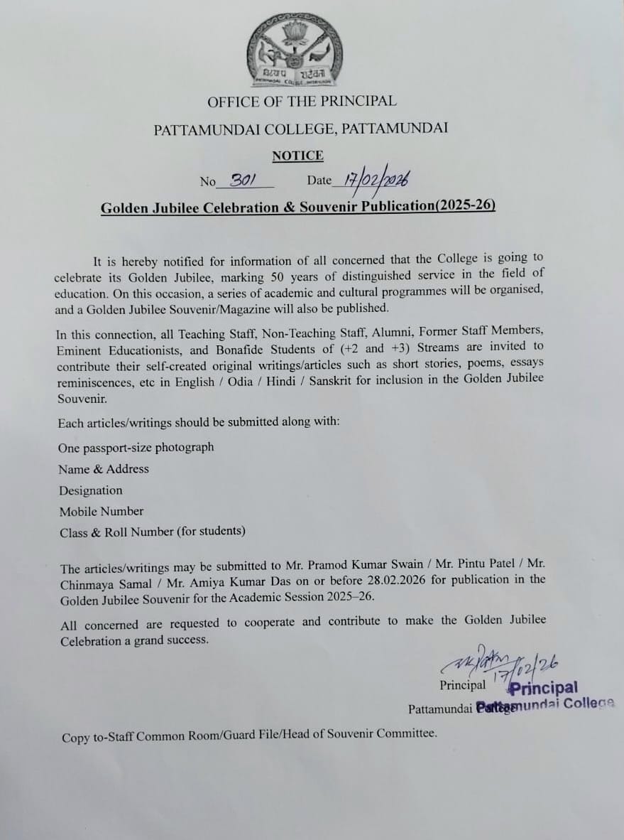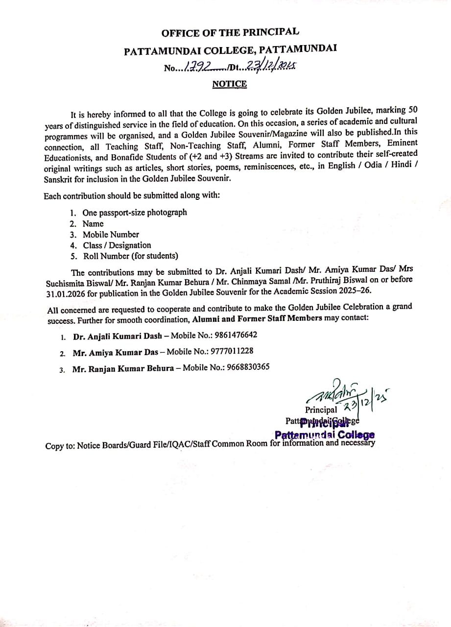 With these enlightening words of Rabindranath Tagore, I welcome you all to Pattamundai College and wish you all the best: “The highest education is that which does not merely give us information but makes our life in harmony with all existence.”- Rabindranath Tagore.