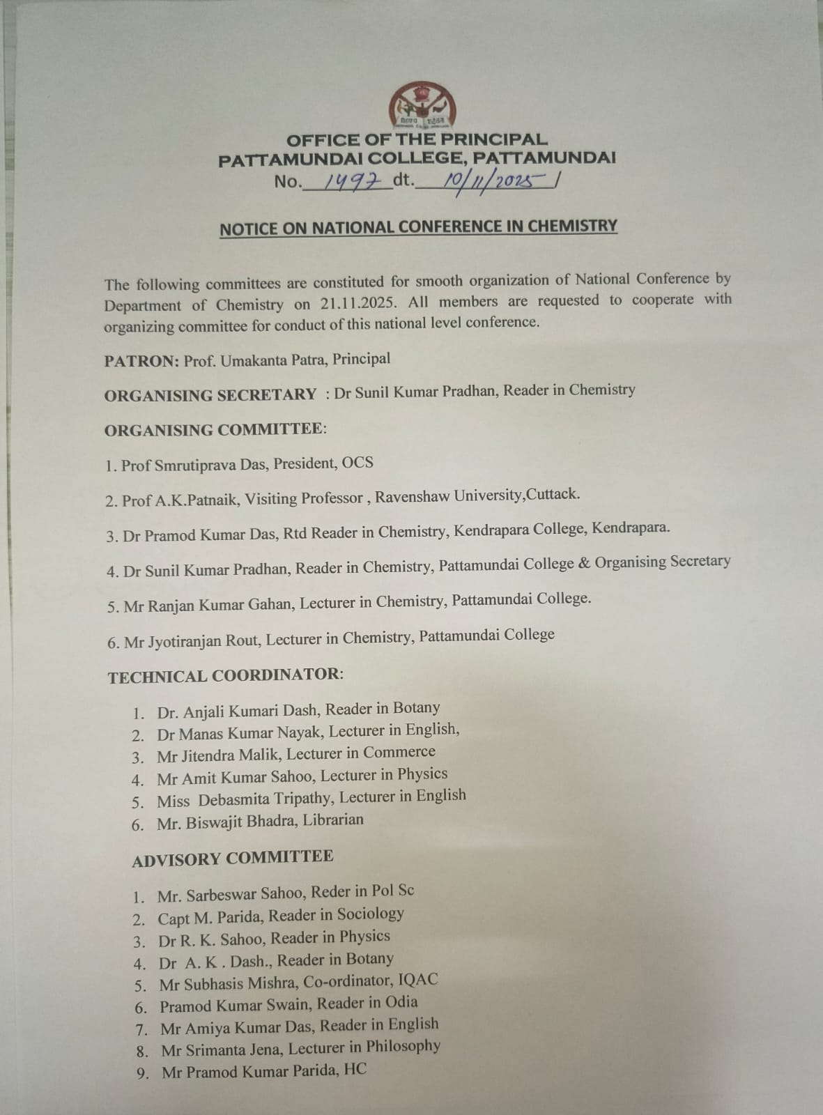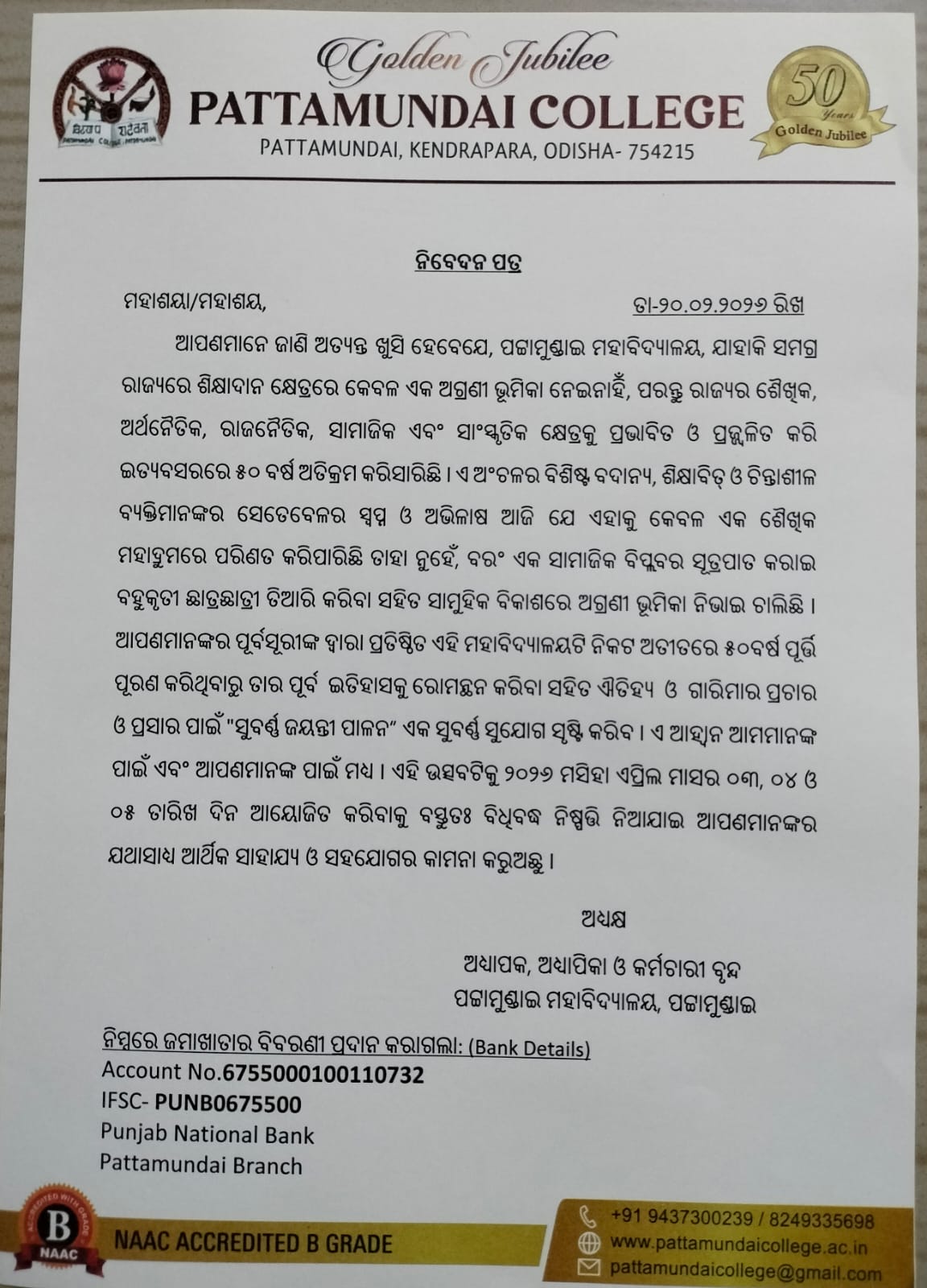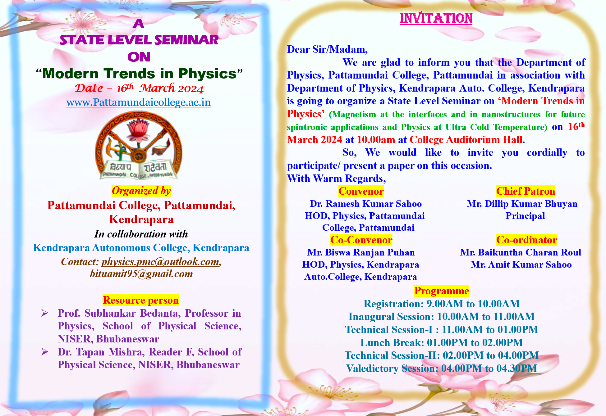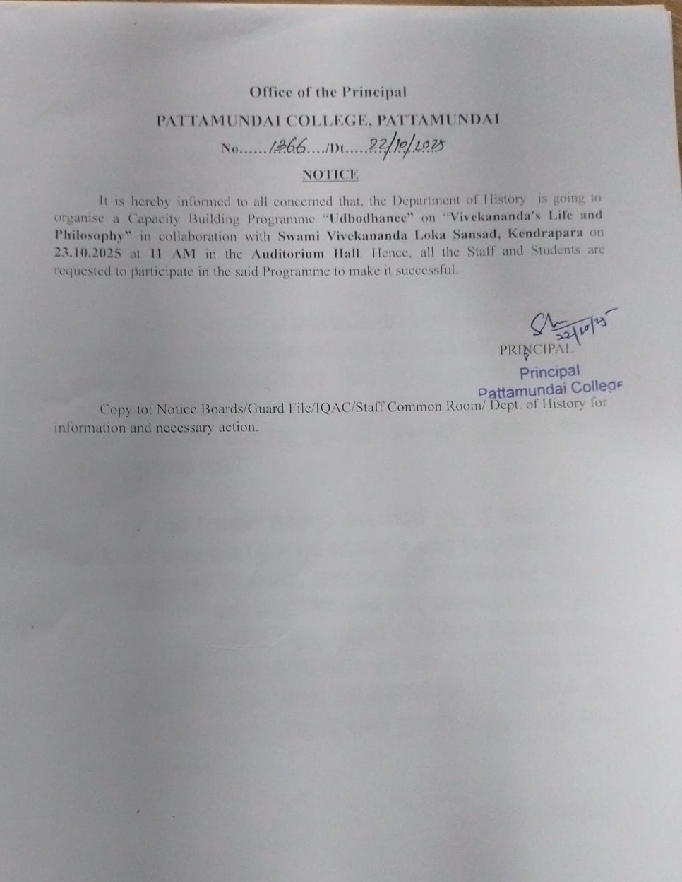 With these enlightening words of Rabindranath Tagore, I welcome you all to Pattamundai College and wish you all the best: “The highest education is that which does not merely give us information but makes our life in harmony with all existence.”- Rabindranath Tagore.