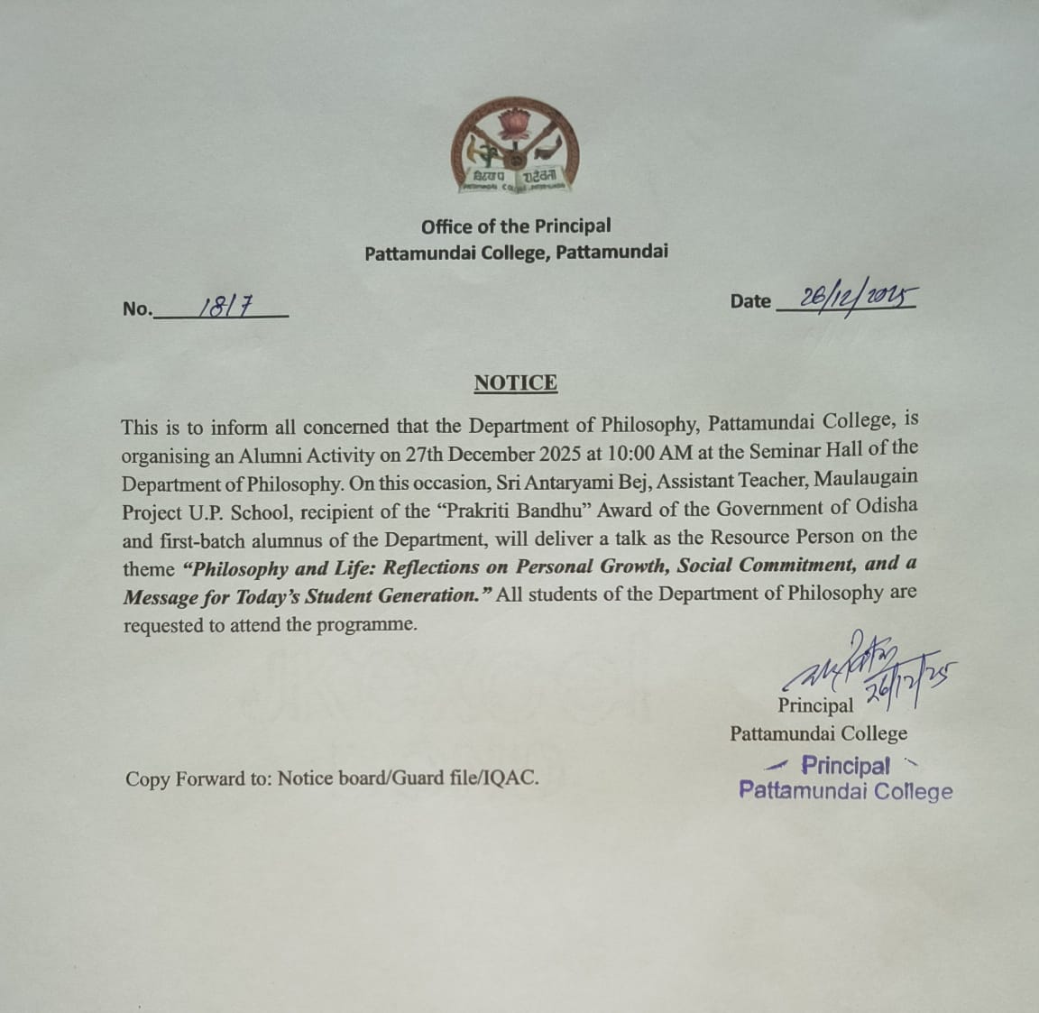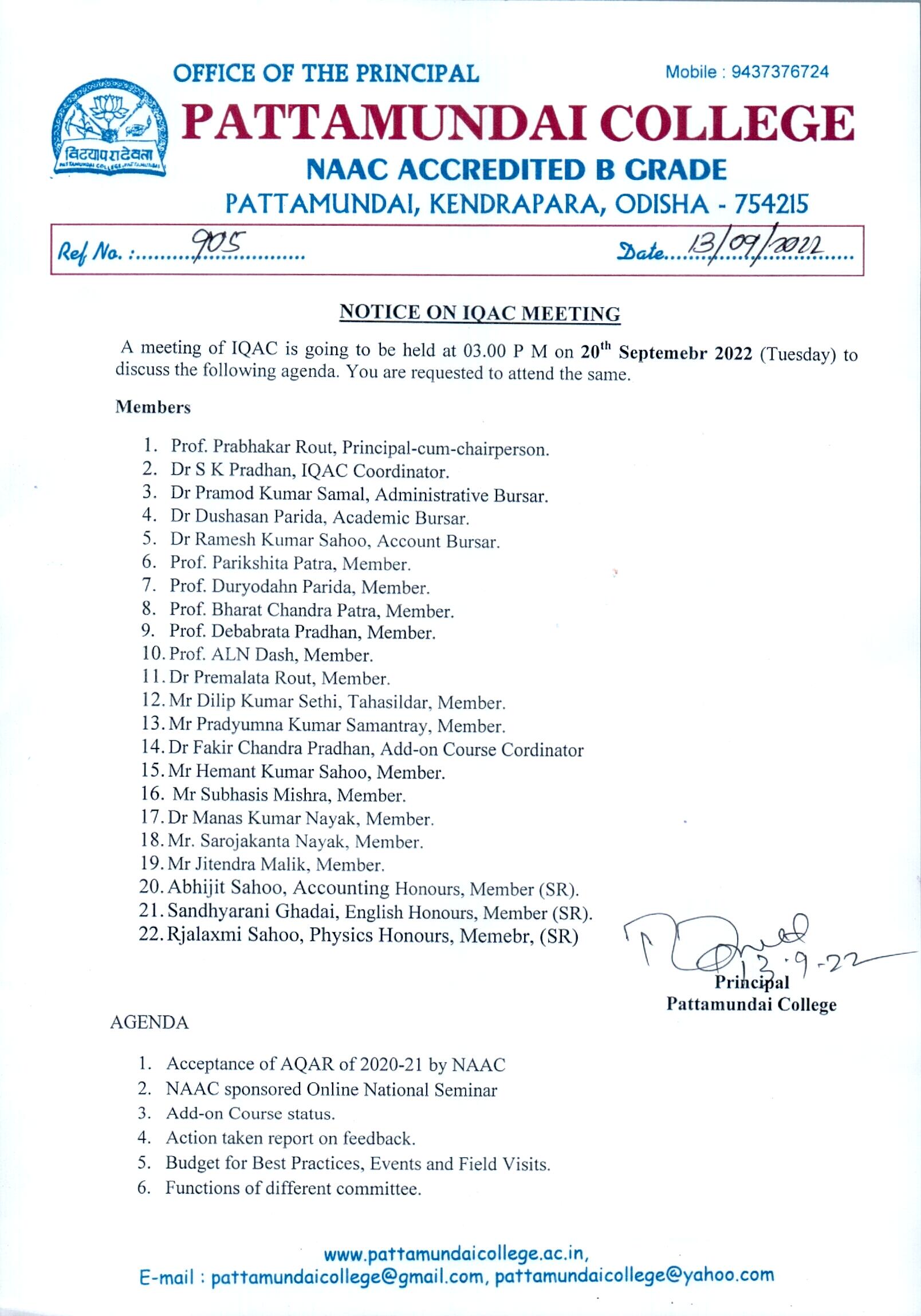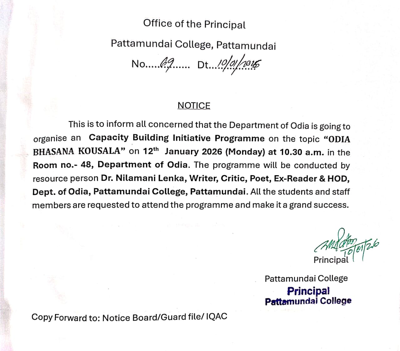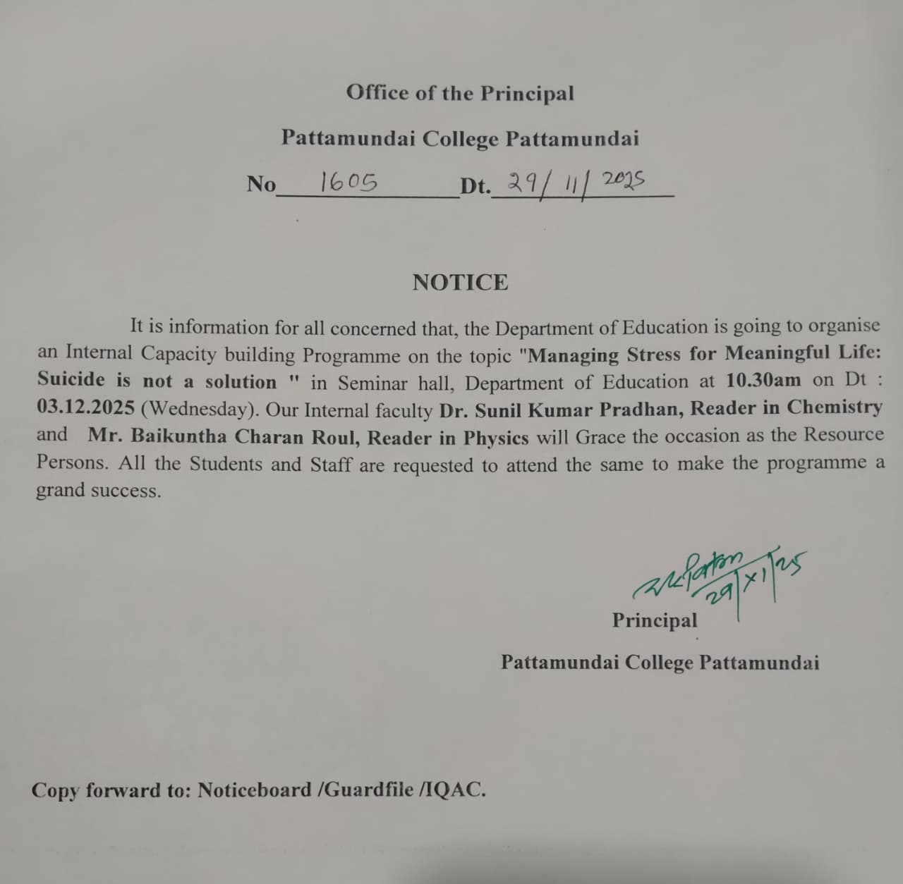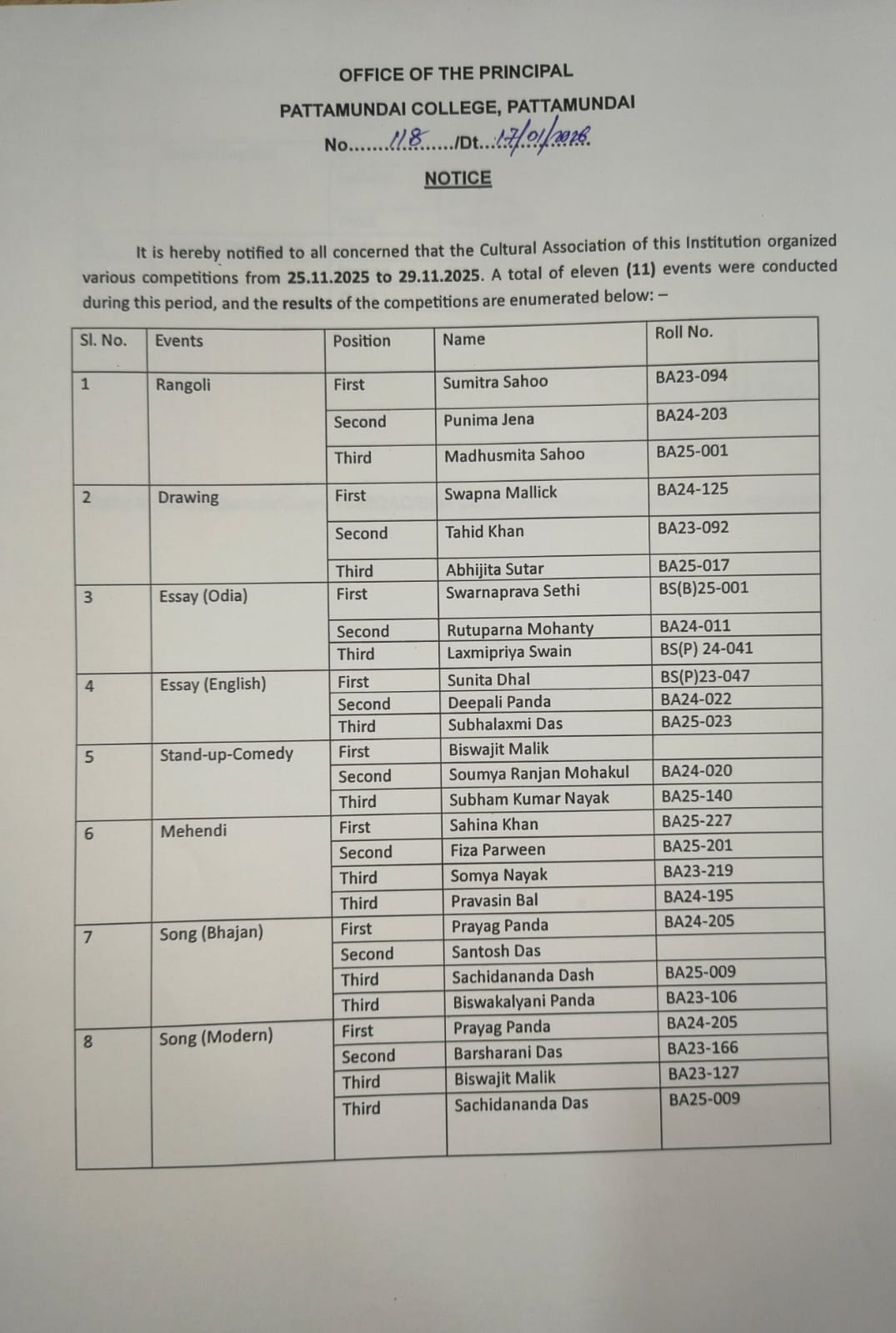 With these enlightening words of Rabindranath Tagore, I welcome you all to Pattamundai College and wish you all the best: “The highest education is that which does not merely give us information but makes our life in harmony with all existence.”- Rabindranath Tagore.