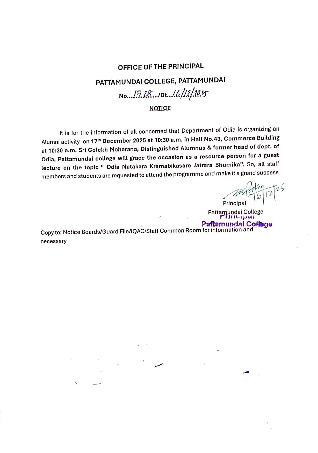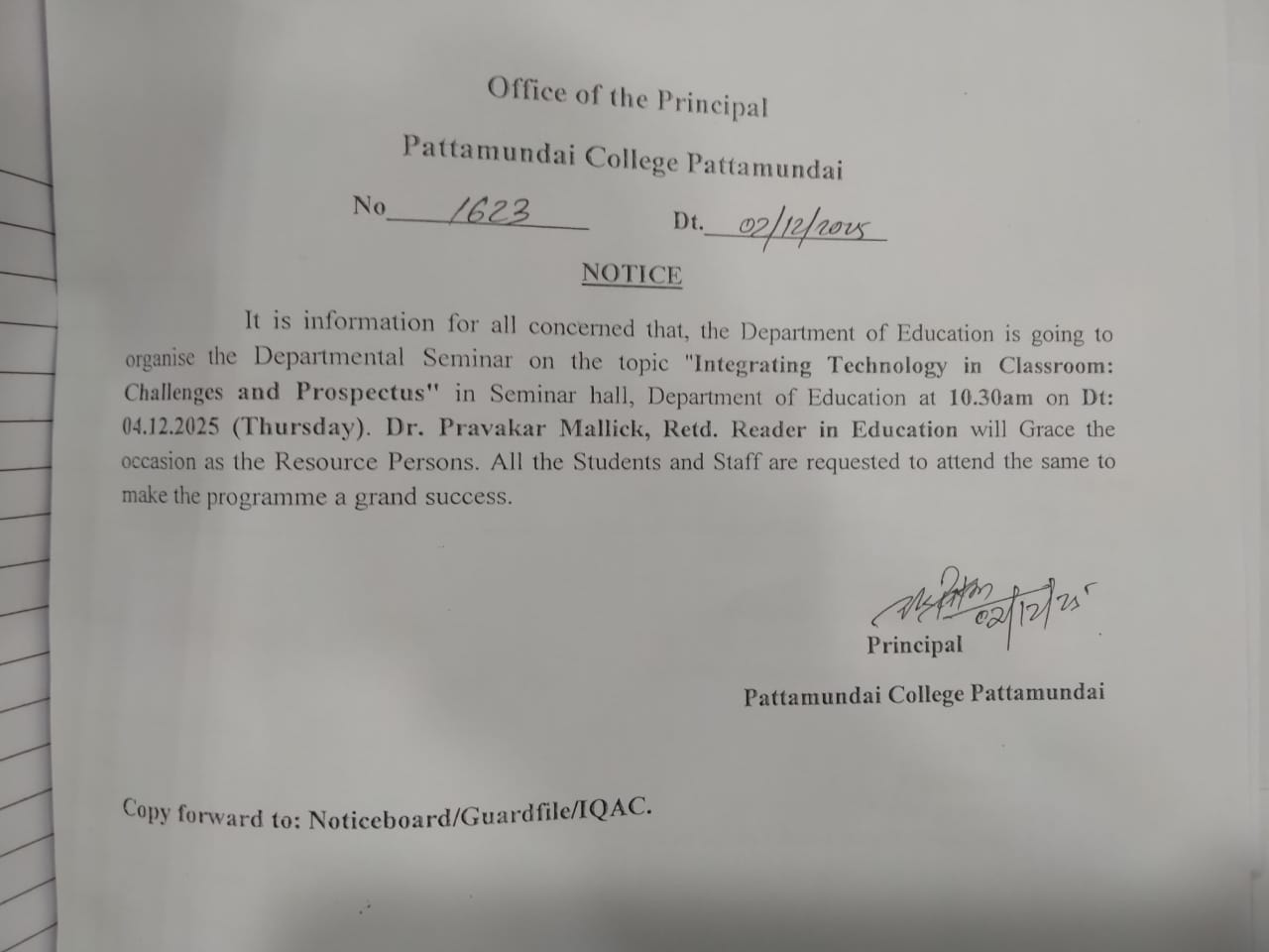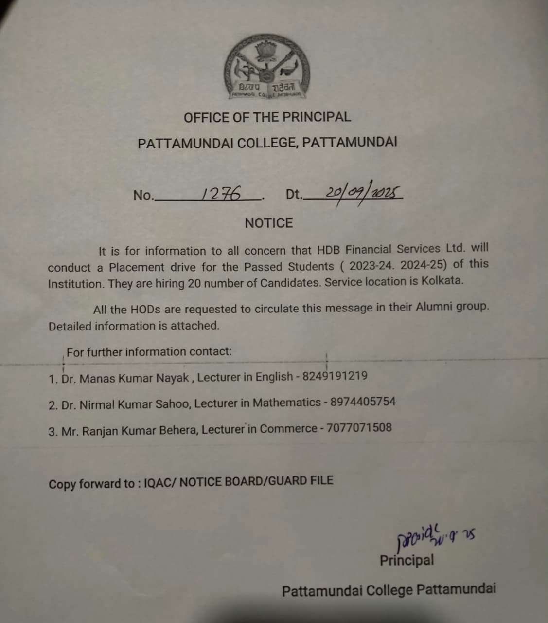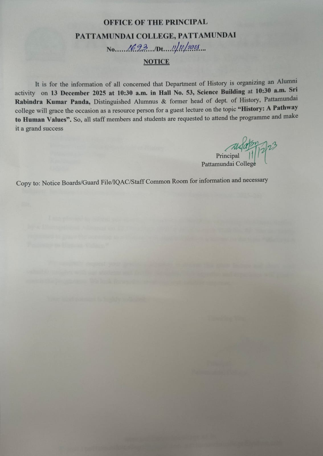 With these enlightening words of Rabindranath Tagore, I welcome you all to Pattamundai College and wish you all the best: “The highest education is that which does not merely give us information but makes our life in harmony with all existence.”- Rabindranath Tagore.