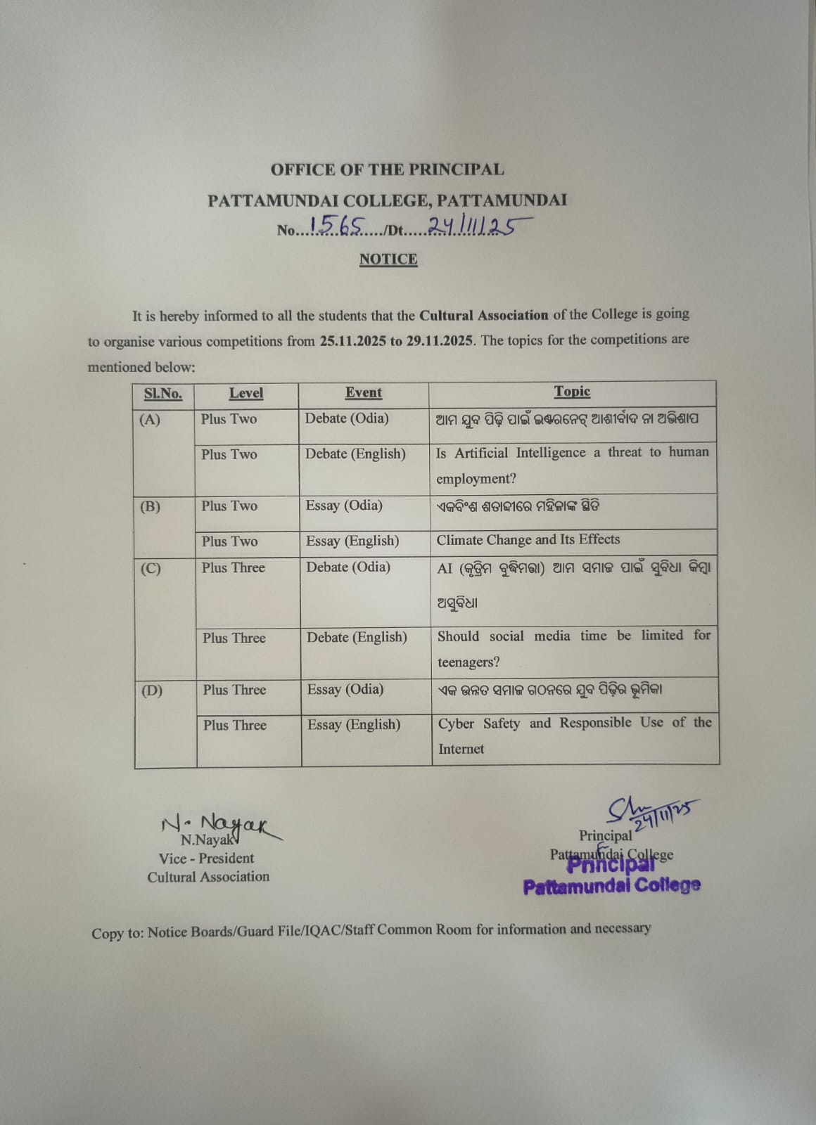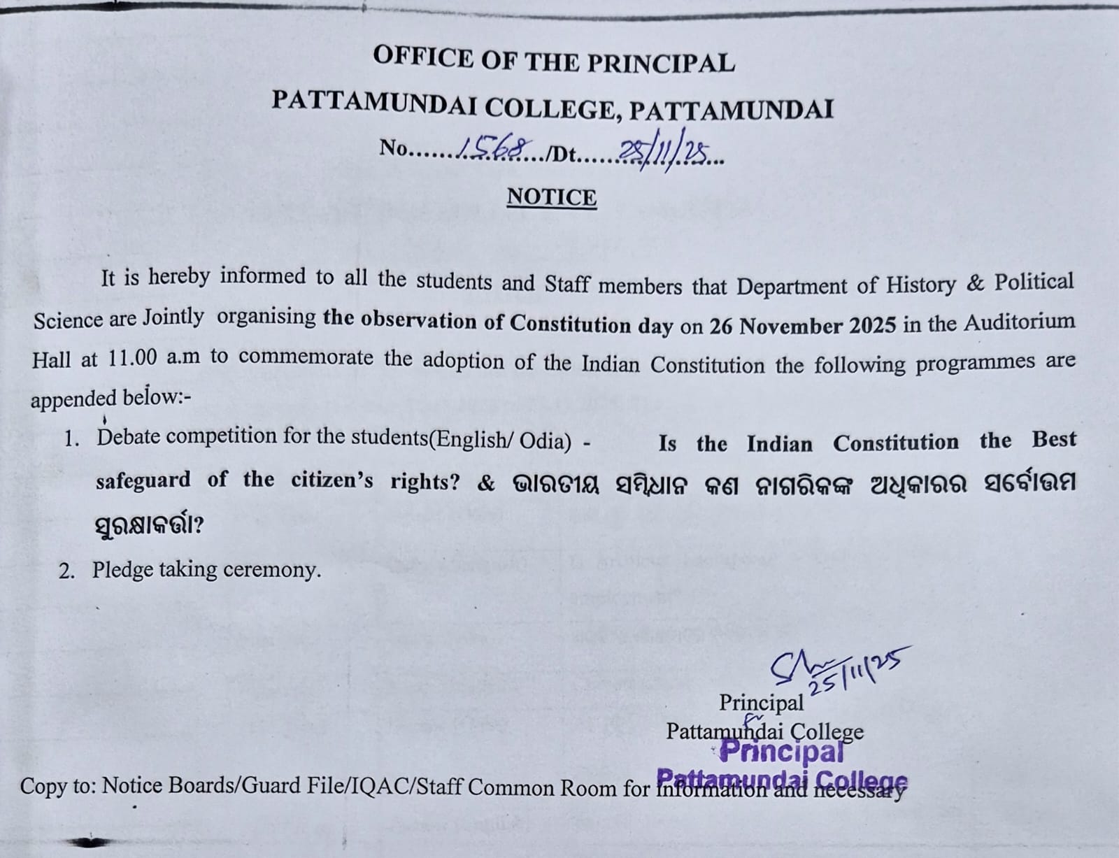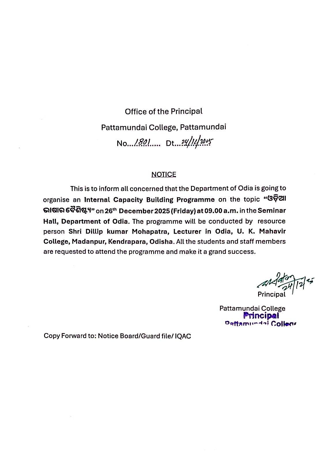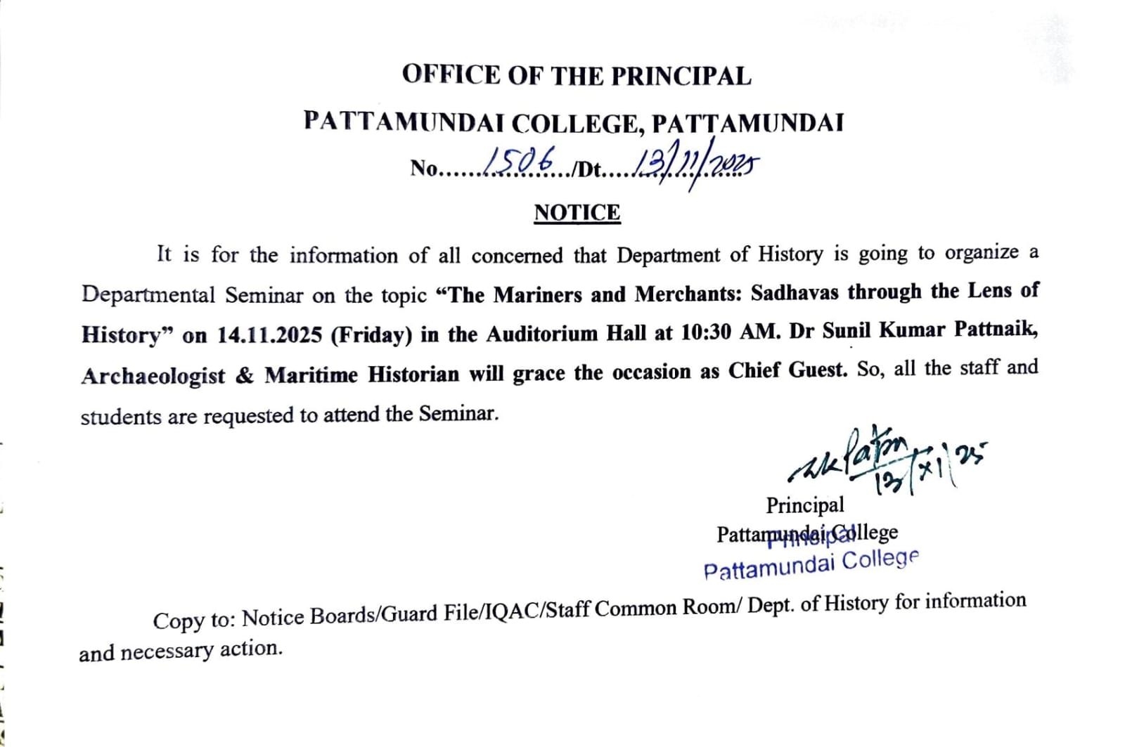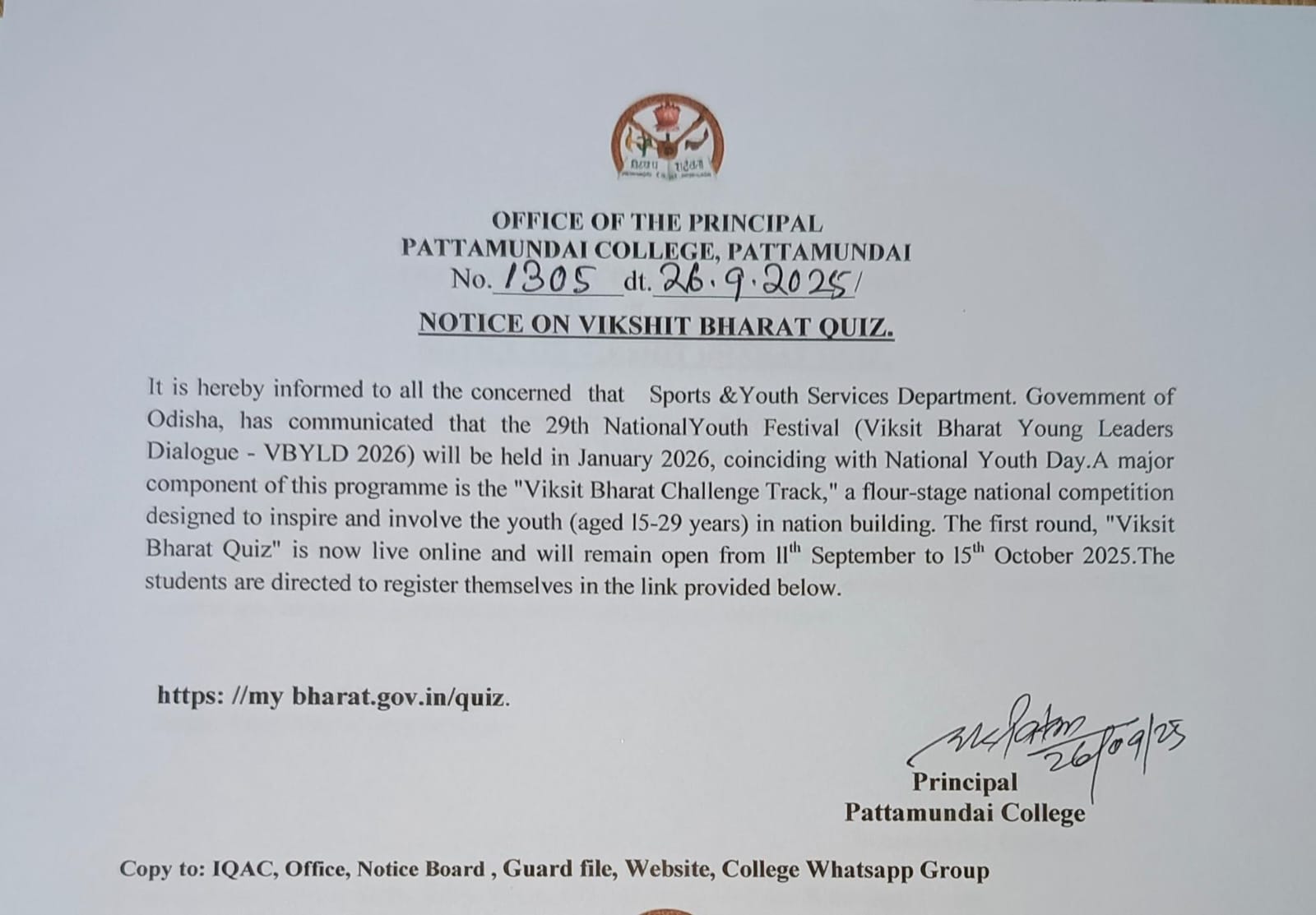 With these enlightening words of Rabindranath Tagore, I welcome you all to Pattamundai College and wish you all the best: “The highest education is that which does not merely give us information but makes our life in harmony with all existence.”- Rabindranath Tagore.